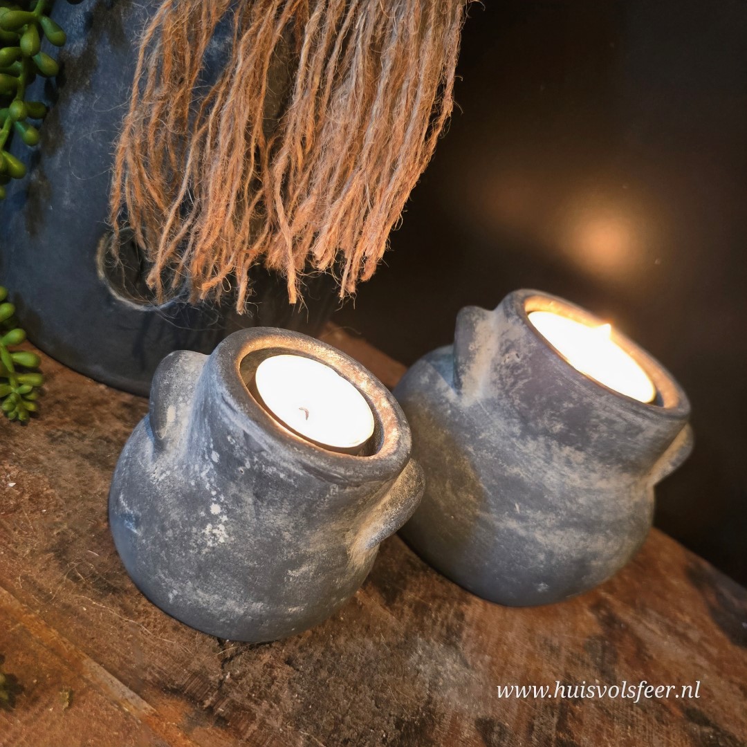 Het compacte formaat maakt deze tealight ideaal voor op een schaal, dienblad, tafel of vensterbank. Plaats er een waxinelichtje in en geniet van een warm en sfeervol licht. Dankzij de kleine oortjes aan de zijkant krijgt het potje een speels en uniek detail.