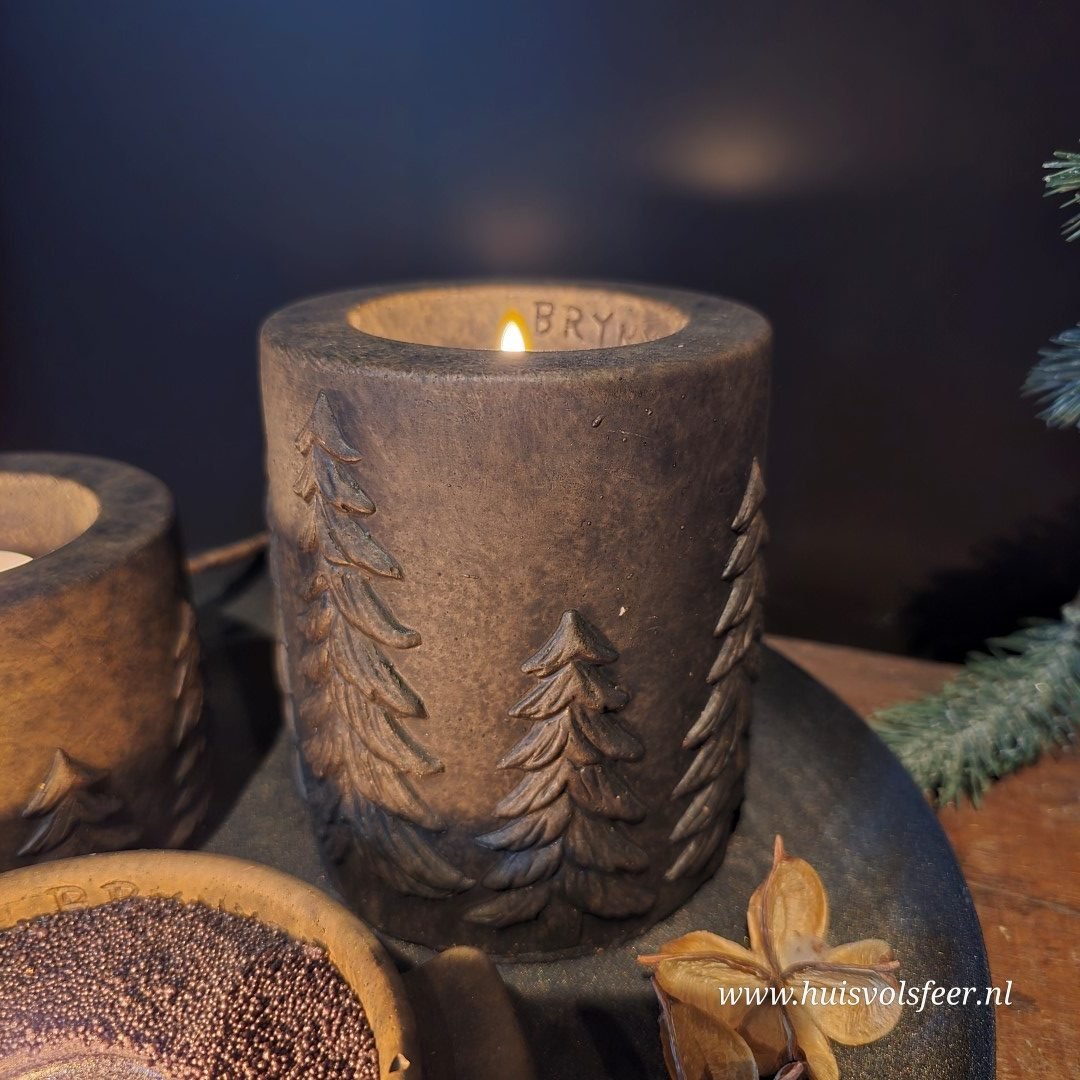 Voeg een vleugje elegantie en warmte toe aan je interieur met deze prachtige waxinelichthouder. Uitgevoerd in de Majestic Brown-kleur, een warme bruintint uit de exclusieve Majestic Brown-collectie van het merk Brynxz, zijn deze houders rondom versierd met een dennenbomen/ kerstbomen motief.