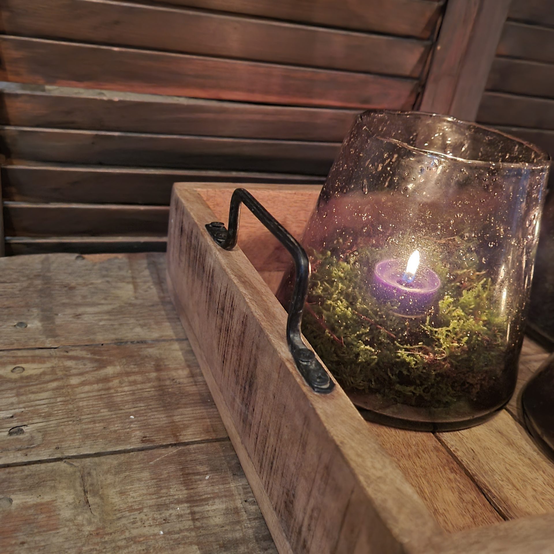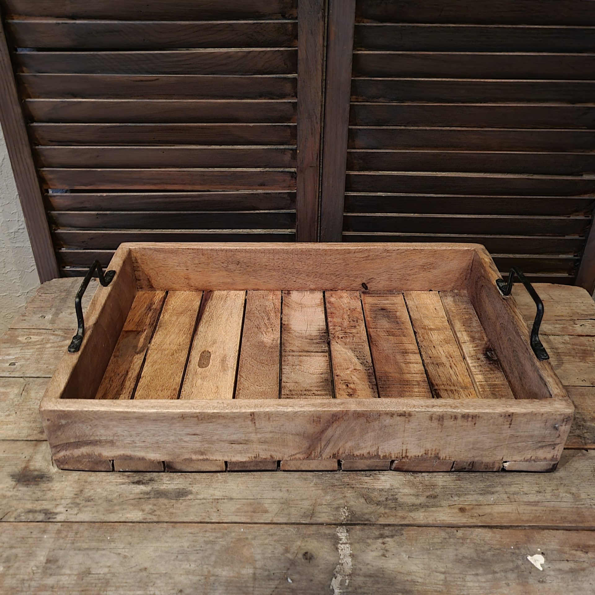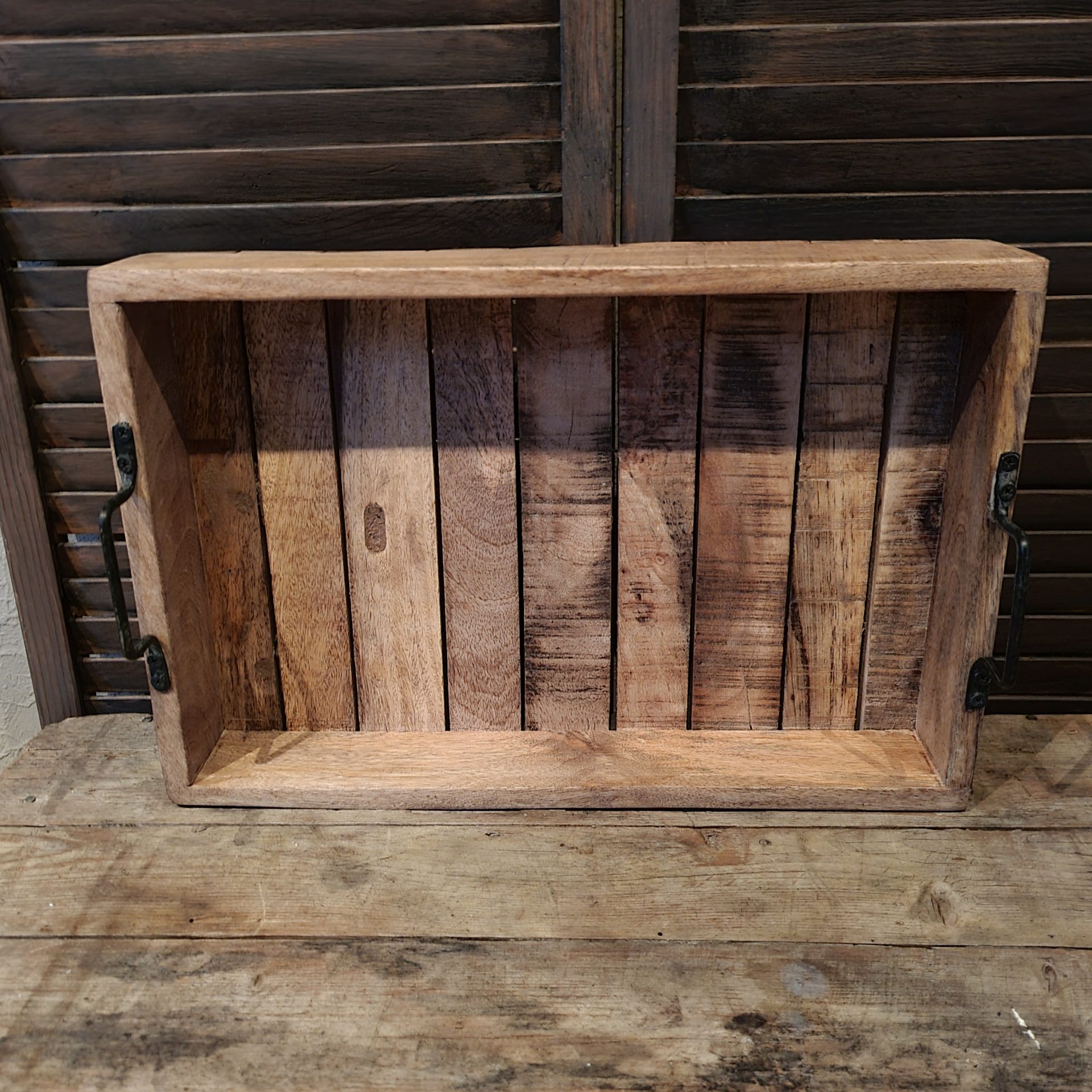Dienblad/ tray met metalen handvaten. Gemaakt van oud doorleefd hout.
