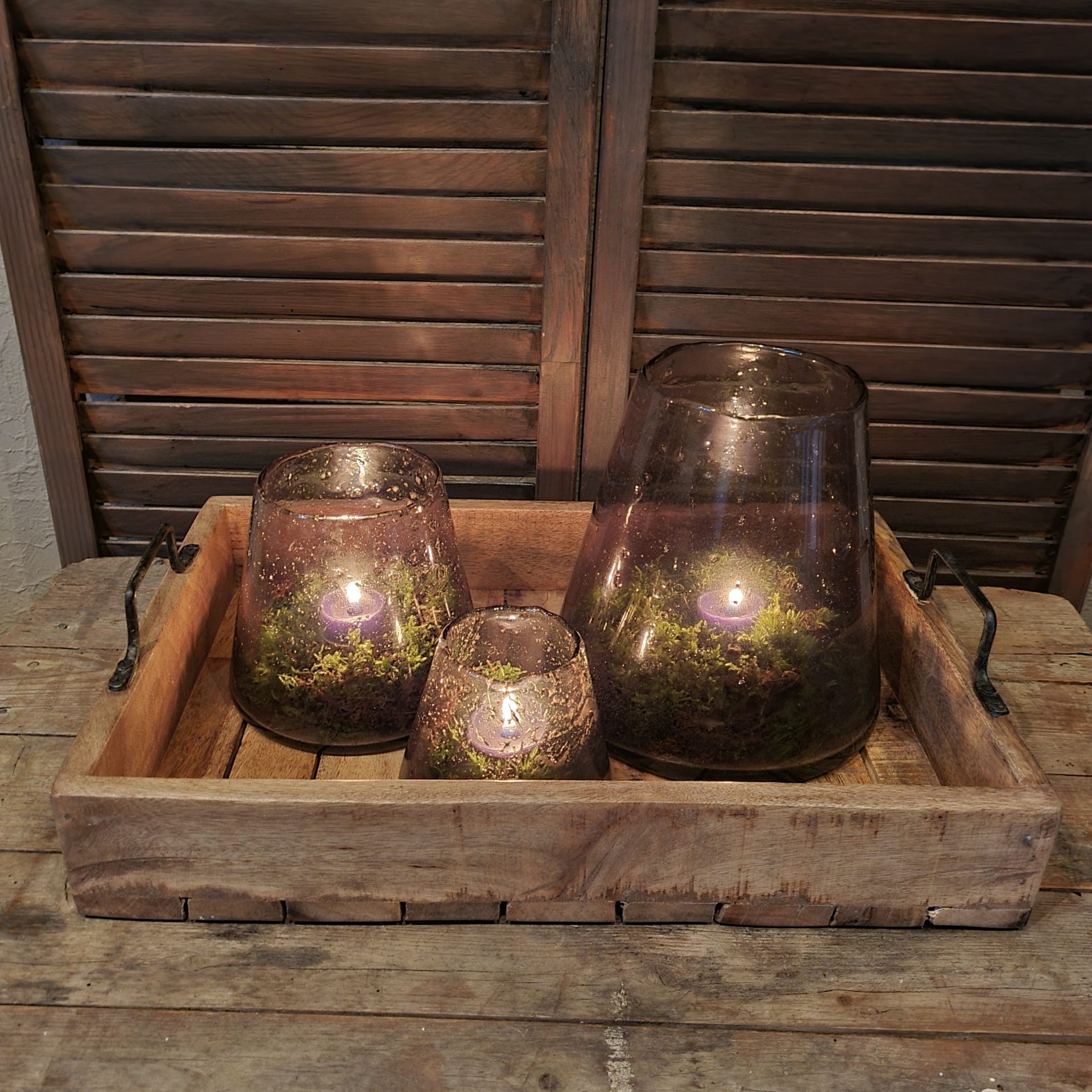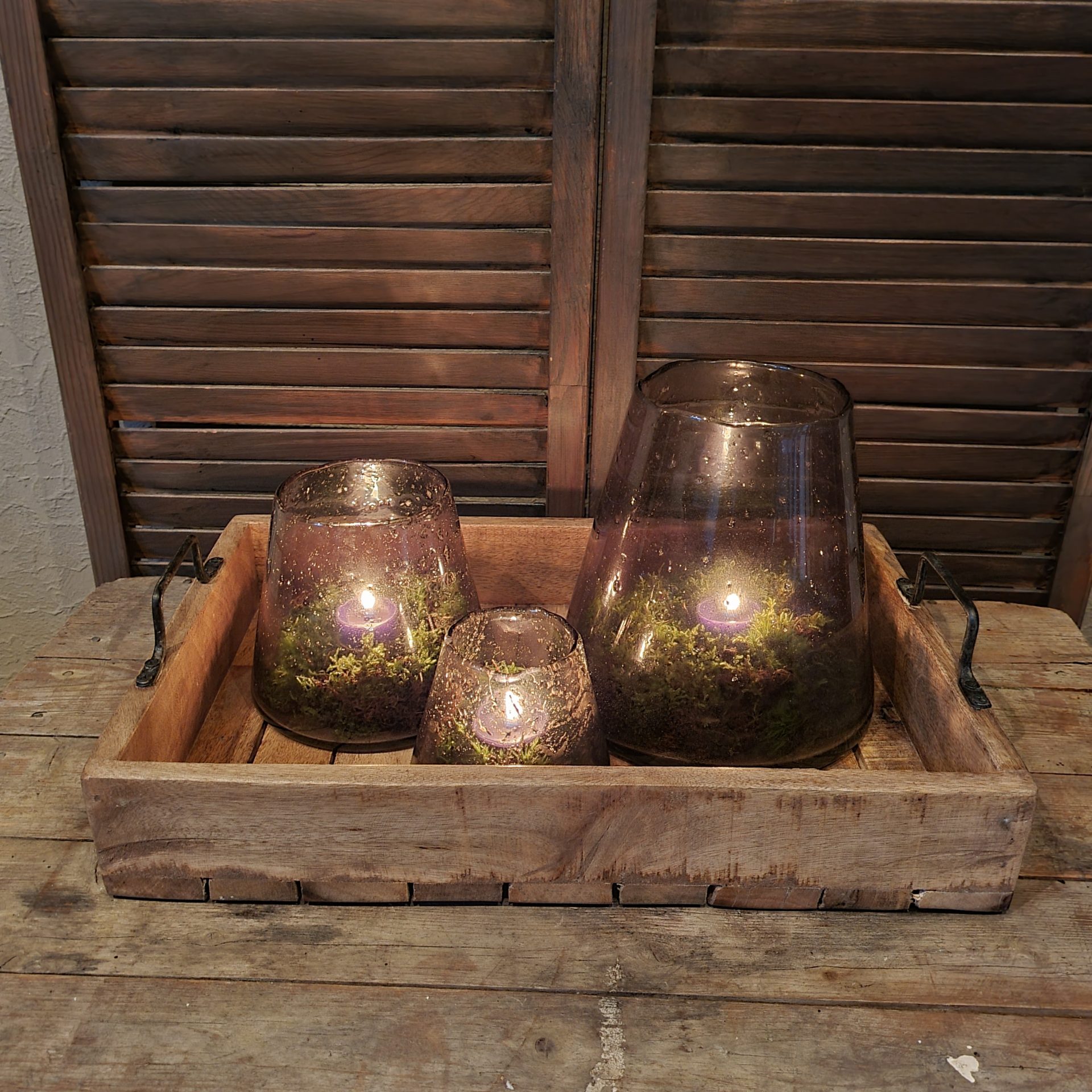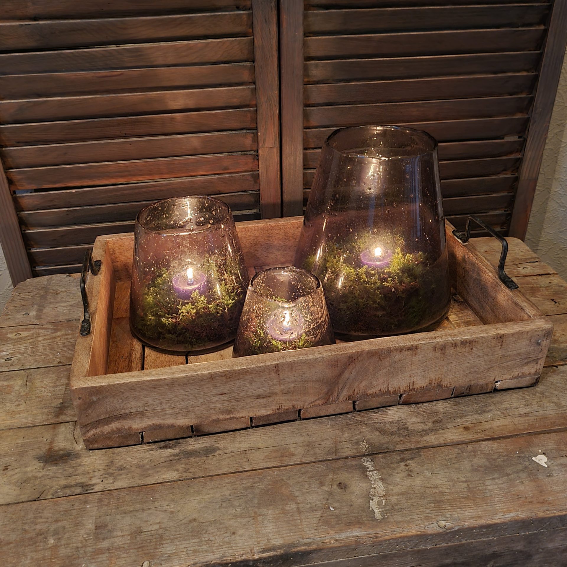 Dienblad/ tray met metalen handvaten. Gemaakt van oud doorleefd hout.