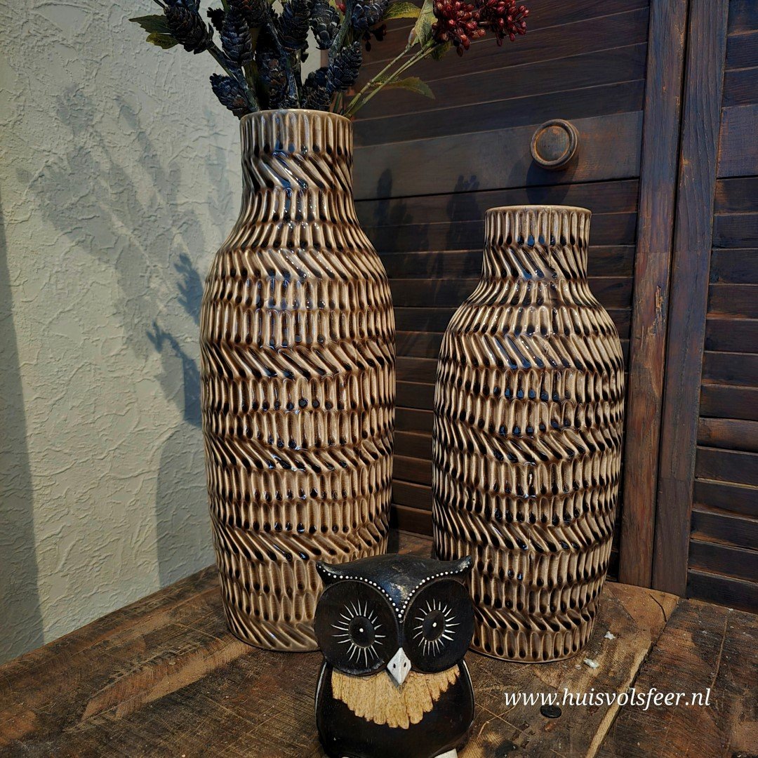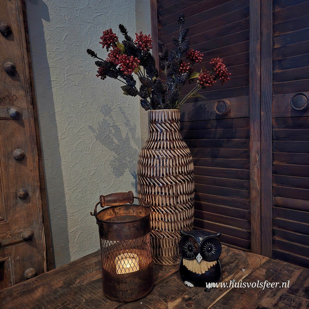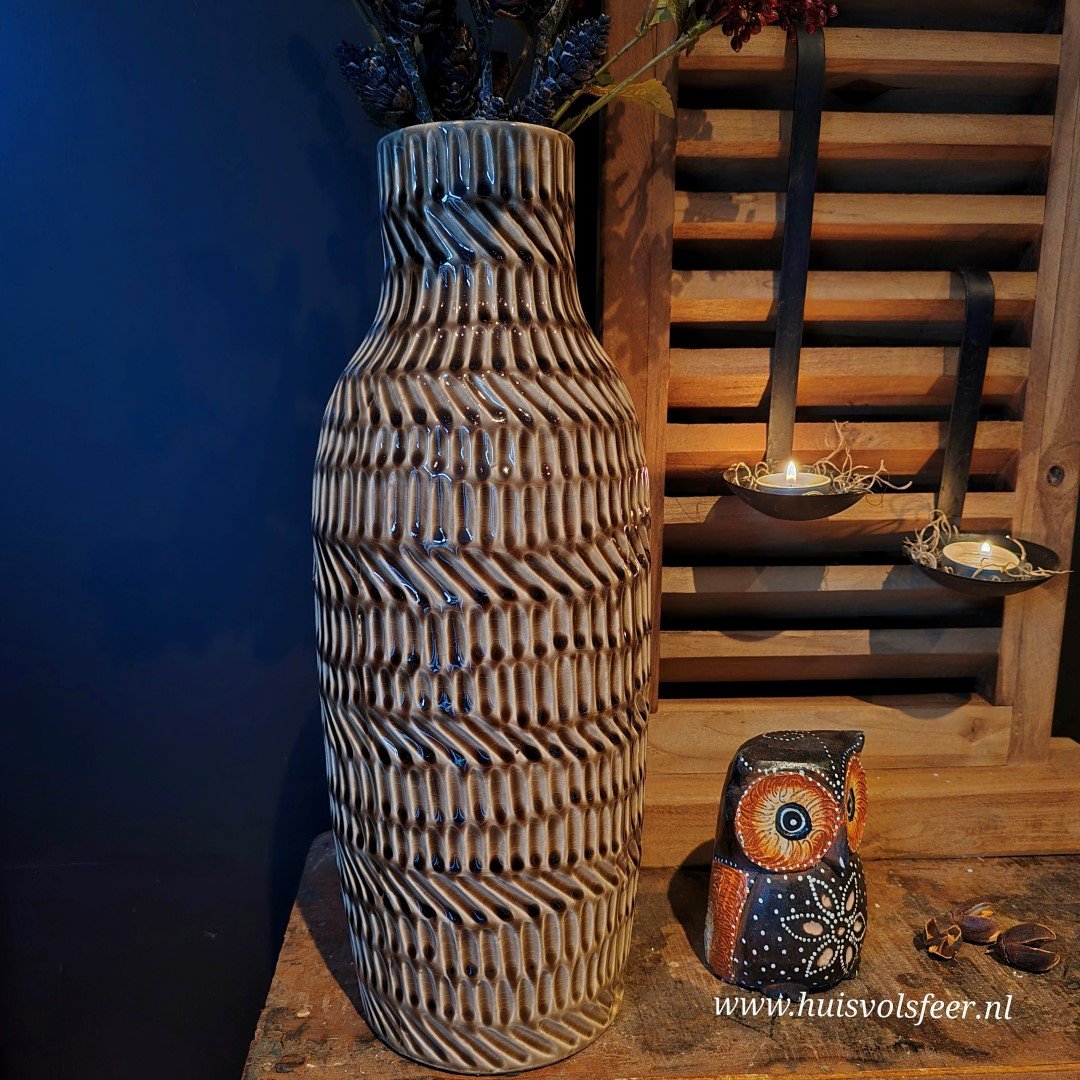 Ideaal voor grotere ruimtes, zoals een vloerplek naast een kast, een ruime tafel, of als decoratie op een console. Perfect te stylen met takken, droogbloemen of gewoon als losstaande eyecatcher.