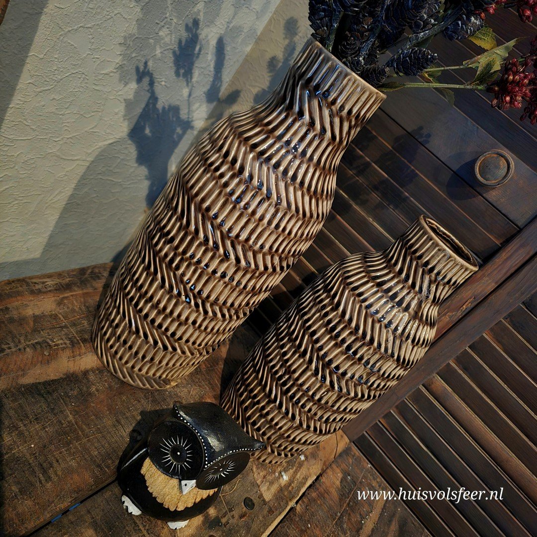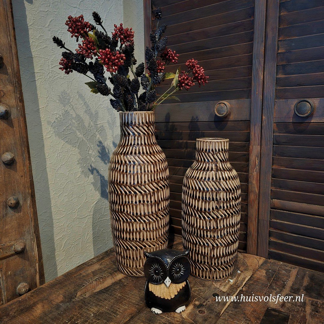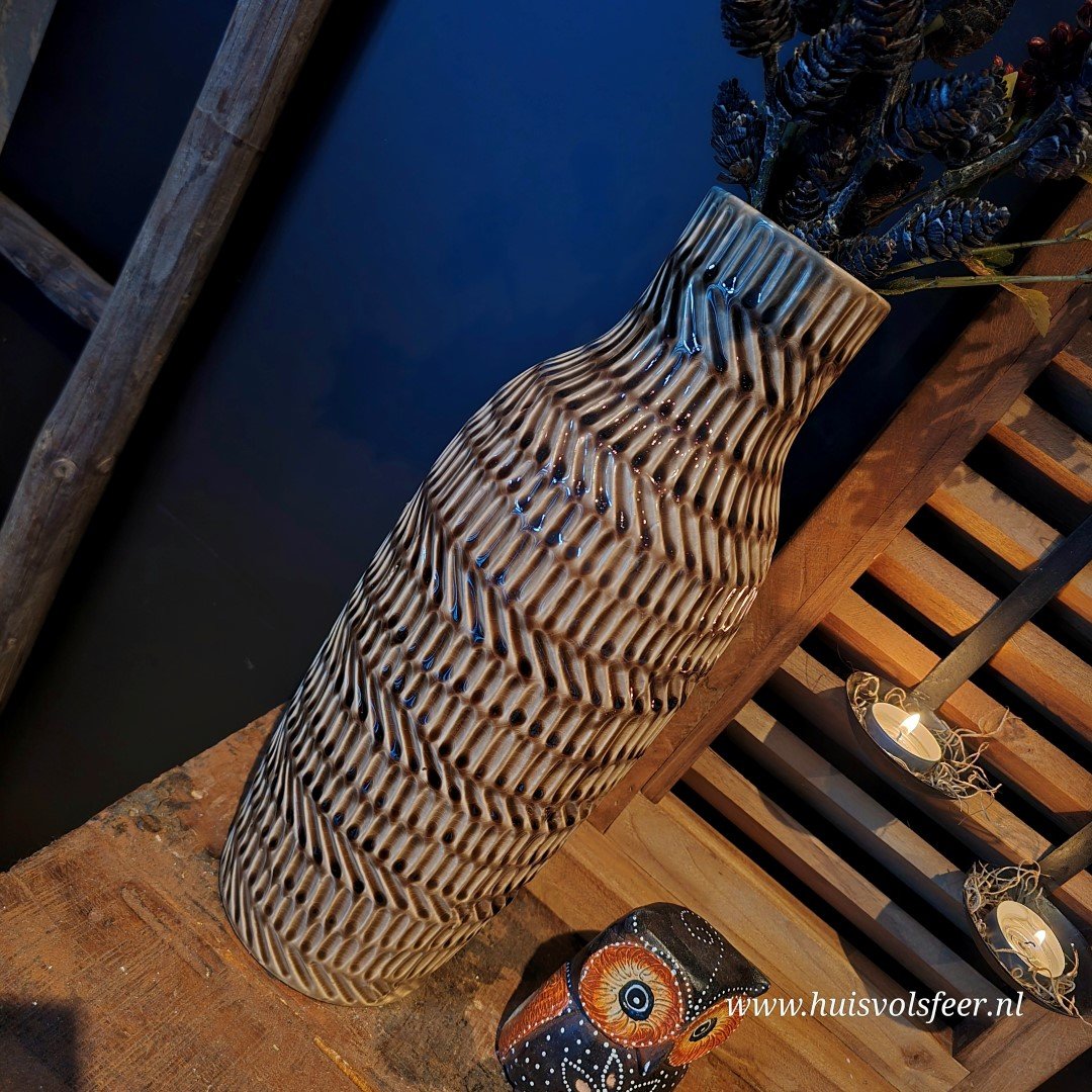 Ideaal voor grotere ruimtes, zoals een vloerplek naast een kast, een ruime tafel, of als decoratie op een console. Perfect te stylen met takken, droogbloemen of gewoon als losstaande eyecatcher.