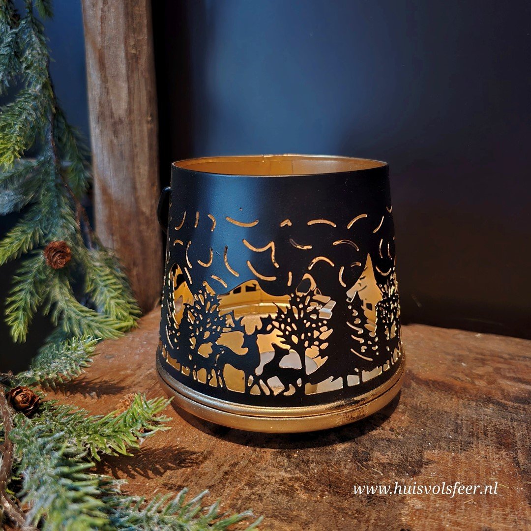 Een bijzonder mooie Waxinelichthouder. Metaal. Goud zwart.